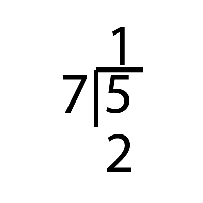 Tenemos que dividir 7 entre 5, es importantes saber el residuo de tu división, por lo tanto, te recomiendo hacerla manualmente; además, tampoco puedes extenderte a los decimales, tienes que hacer tu división hasta llegar a los enteros.