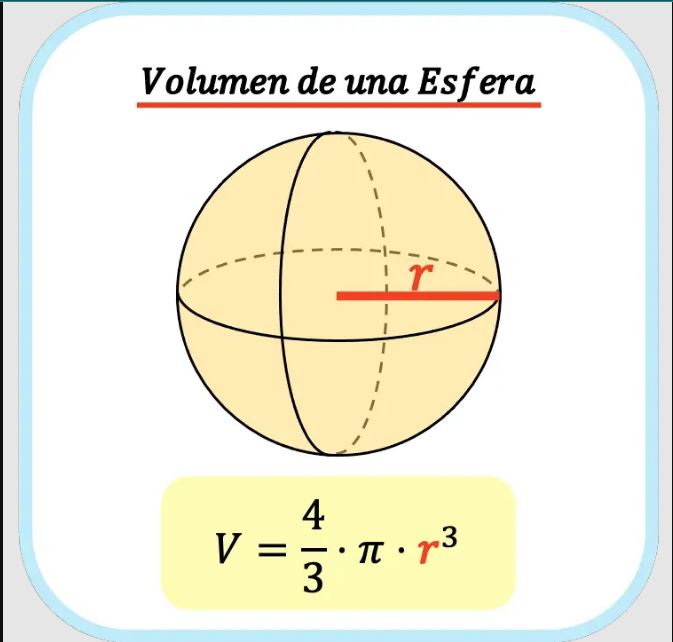Para obtener el volumen de una esfera, necesitamos saber el radio y, por supuesto, nuestro número mágico: Pi. El radio se multiplica al cubo, o sea este mismo tres veces, ¿por qué al cubo? Porque lo estamos llevando a una tercera dimensión. Una vez obtenidos estos valores, lo multiplicamos por ¾. Siendo así, su fórmula quedaría como: PI x r^3 x3/4